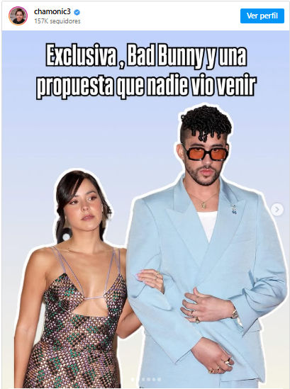 Fue a través de su cuenta de Instagram donde Chamonic publicó una serie de fotografías y un mensaje, asegurando que desde su ruptura en 2022, Bad Bunny siempre estuvo pensando en Gabriela Berlingeri, por lo cual después de que regresaron, le propuso matrimonio.
